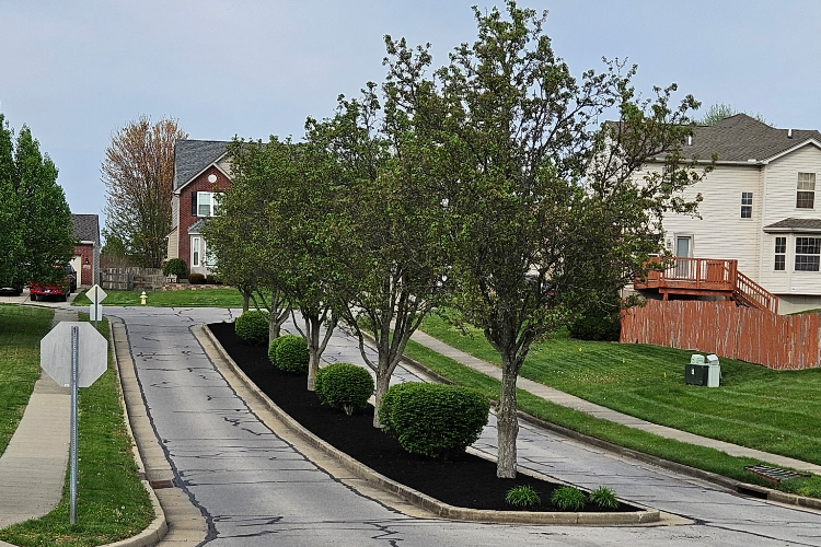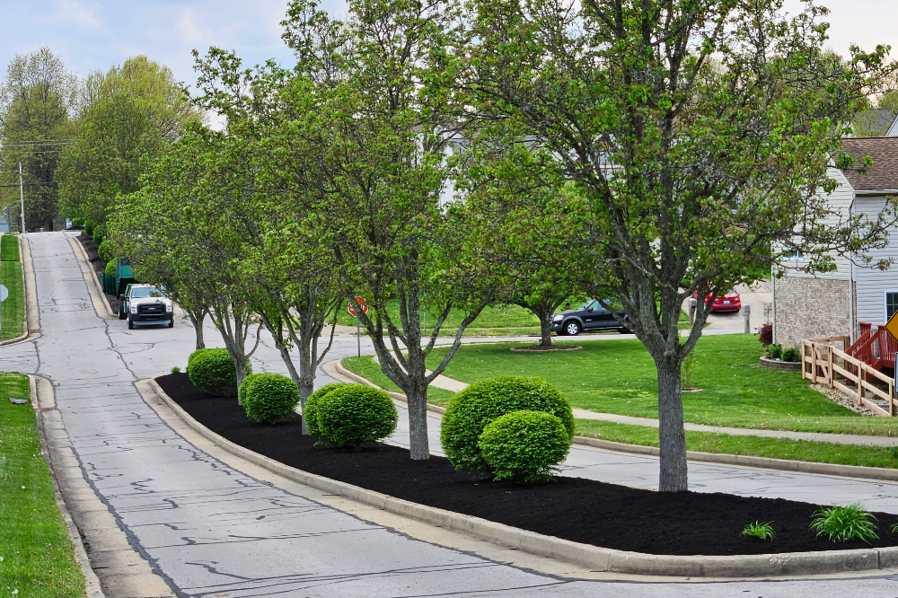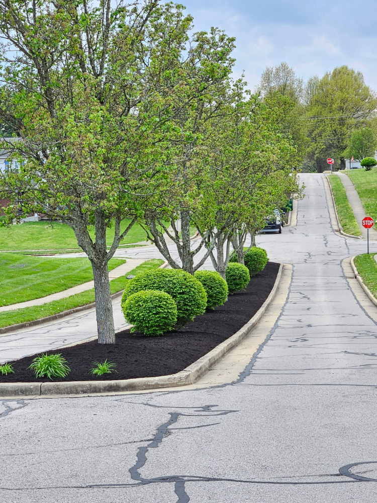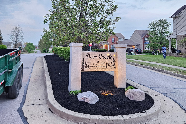 Deer Creek HOA of Crescent Springs, Kentucky requested a spring cleanup on the entrance to their community. We delivered. All debris was removed and we replaced all the mulch. It really makes their entrance pop!