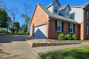 Residential retaining wall. Not all problems require big solutions. One of our customers in Union, Kentucky was having problems with rock washing out of their landscaping bed when it rained. Our solution was a small retaining wall.